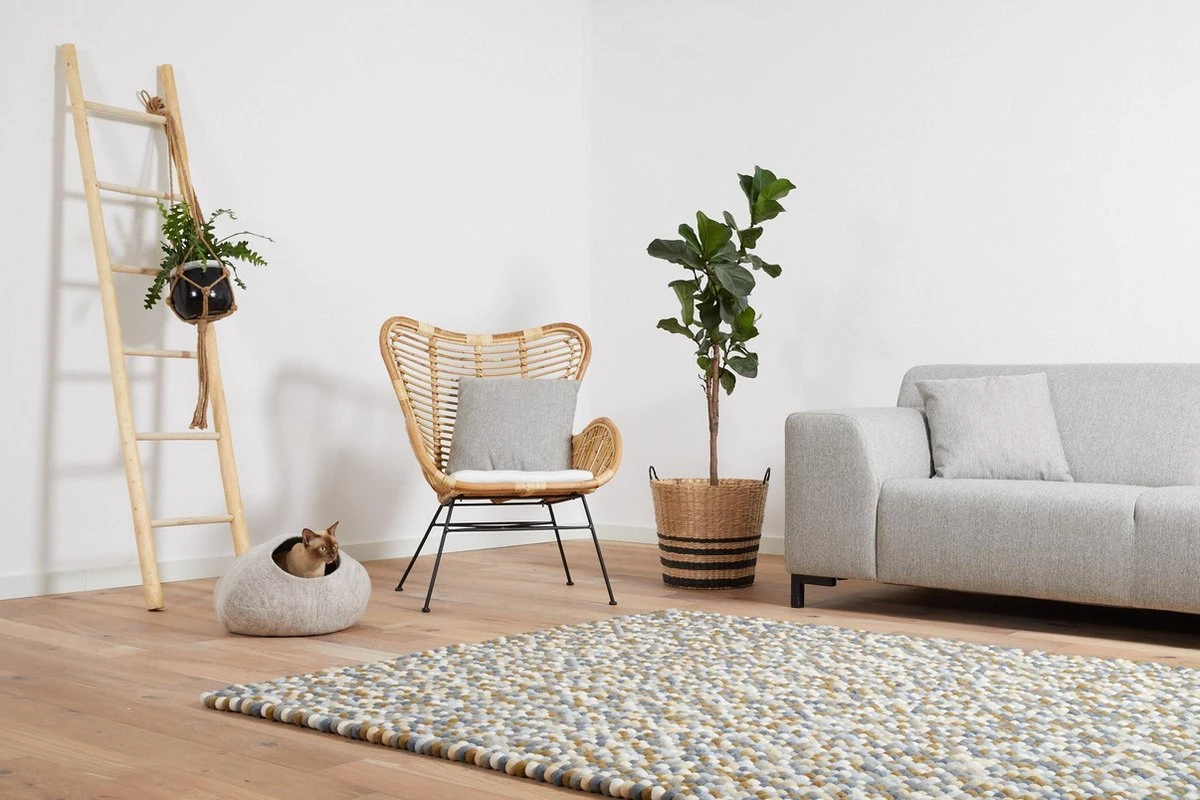 Schoonmaken is simpel. Met een zachte, gladde borstelkop kunt u de cave stofzuigen. De wol is van nature vettig en stoot daardoor het meeste vuil af. Vlekken zijn het beste te verwijderen door deze te deppen met een schone, licht bevochtigde doek en tussendoor met een schone droge doek. Hardnekkige vlekken kunnen eventueel met een groene zeep oplossing worden behandeld.