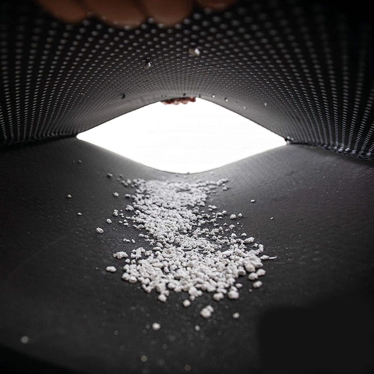 Hygiëne in kattenhuishouden: de kattenmat beschikt over een klittenbandsluiting, zodat bij het optillen van de kattenmat geen korrels op de grond vallen.