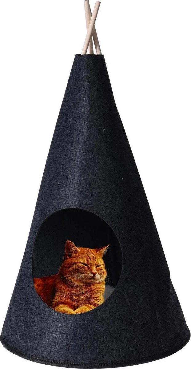 De perfecte comfortabele schuilplaats voor uw kat of klein huisdier. De tipi is gemaakt van warm vilt en heeft een comfortabel bed in de bodem.