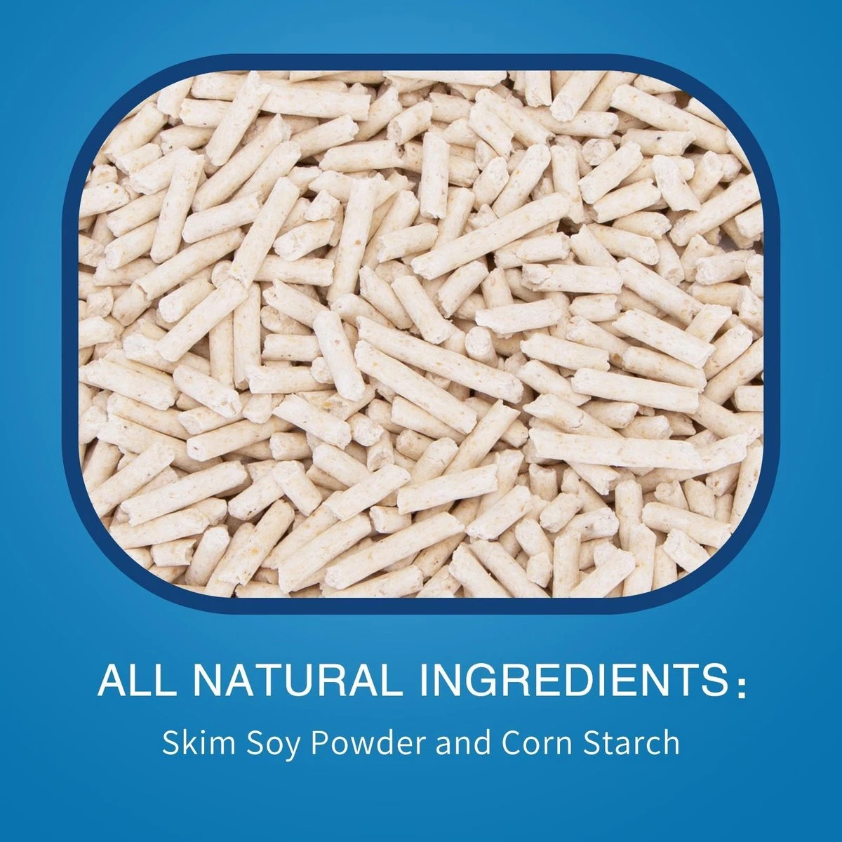 De Nobleza Tofu kattenbakvulling is op basis van magere sojapoeder, maïszetmeel, natriumbicarbonaat, calciumcarbonaat, guargom gemaakt. De korrels absorberen de urine binnen enkele seconden en neutraliseert de vieze geurtjes. Bovendien hebben deze korrels als voordeel dat ze stofvrij zijn en is het daarom beter voor de luchtwegen van je kat dan grit.