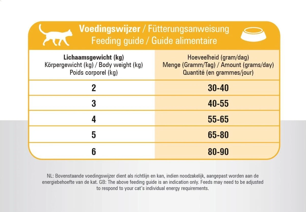 VitalCare INDOOR is een hoogwaardige voeding speciaal voor katten die in huis leven. Binnenkatten zijn vaak wat minder actief en hebben daarom een lagere voedingsbehoefte. Het hoge eiwitgehalte zorgt dat de spieren intact blijven en het lagere vetgehalte helpt je kat op gewicht te blijven. Hierdoor is de VitalCare INDOOR ook bijzonder geschikt voor gesteriliseerde of gecastreerde katten. Door toevoeging van natuurlijke vezels vormen haren die worden ingeslikt tijdens het wassen geen haarballen in de maag. De vezels zorgen voor een natuurlijke afvoer via het maag-darmkanaal van de kat. Hierdoor verlaten de haren het lichaam met de ontlasting en geven ze geen problemen meer. Veel binnenkatten hebben last van gebitsproblemen. De vorm van het brokje is zo ontworpen dat de kat beter moet kauwen. Dit helpt tandsteen en tandplak voorkomen. Urineverzurende stoffen helpen blaasgruis te voorkomen.