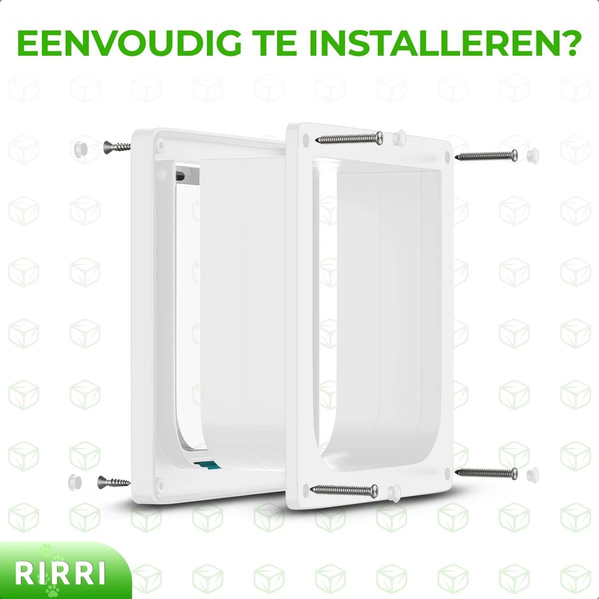Eenvoudig te installeren- Het installeren van een kattenluik hoeft niet ingewikkeld te zijn. Sterker nog; het is eenvoudig! Boor simpelweg vier kleine gaatjes met de meegeleverde schroeven en plaats het kattenluik waar jij wilt. Een kind kan de was doen.